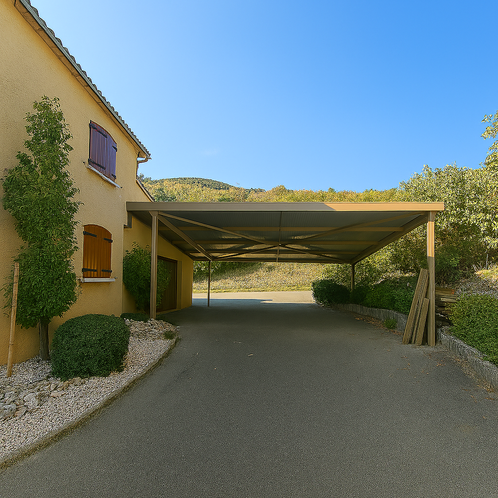 Protégez votre véhicule tout en valorisant vos extérieurs avec un carport en métal galvanisé et thermolaqué, conçu sur mesure selon vos besoins.