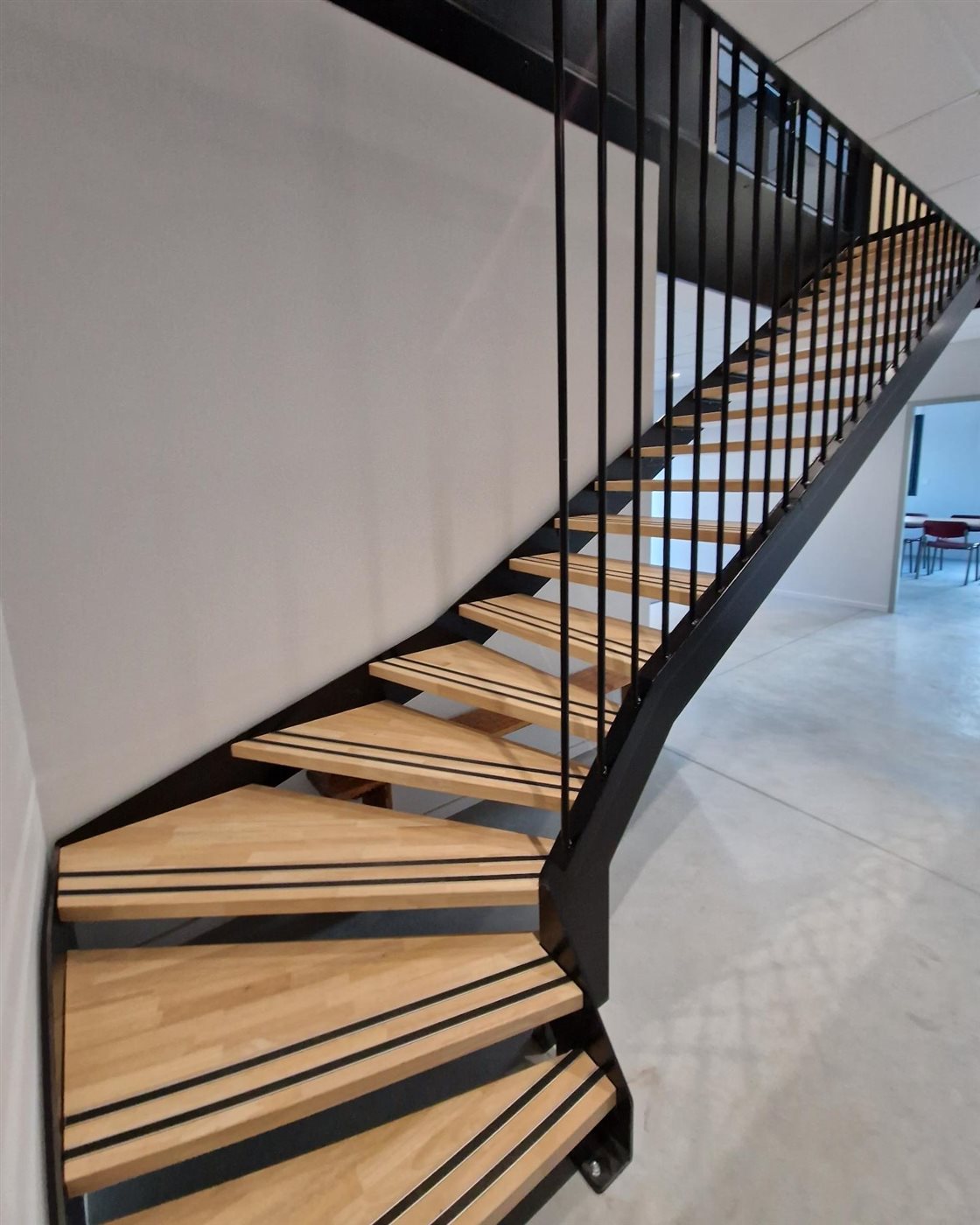 Cet escalier illustre la capacité de notre société à concevoir des ouvrages sur mesure, adaptés aux besoins et aux goûts de chaque client. Grâce à notre bureau d’études, à notre atelier de fabrication et à notre cabine de thermolaquage, nous maîtrisons l’ensemble du processus de fabrication.
